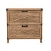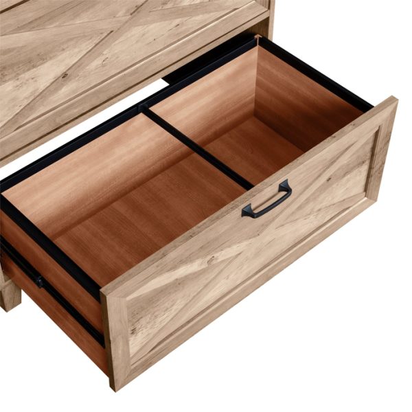 Aumenta el encanto de tu espacio de trabajo doméstico con este archivador lateral de dos cajones. Cumple con la promesa de un amplio almacenamiento de documentos, que se adapta tanto al tamaño de las letras como al tamaño del papel legal. Cada cajón unidad con deslizamientos suaves del rodillo y extensión completa para un fácil acceso a todo lo que se mantiene dentro. Una presentación elegante incluye un acabado de grano de madera de roble rústico con mucha variación natural, reforzando su carácter casual. El detalle del soporte de metal con acabado negro agrega un toque de acabado perfecto y dimensional. Incluye: Un (1) cajón lateral para archivos Materiales: 88% PB, 10% MDF, 2% metal Acabado: Roble rústico El estilo casual se adapta a los espacios de oficina del hogar o de negocios casuales. El acabado de roble rústico añade un aspecto natural. Los acentos de metal negro incluyen tirantes de esquina y hardware. X-bars decorativos en cajones. Contiene documentos legales y tamaño carta. La barra colgante interior soporta archivos colgantes. Cajones totalmente extensibles Rasguños y abolladuras resistentes Posee documentos legales y tamaño carta Soporte y remache de metal Colgador de archivos El aspecto relajado de la granja agrega un atractivo casual al hogar y a las oficinas profesionales Añade un ambiente orgánico y natural con un acabado de madera de roble rústico Detalles de granero en X-cross en dos frentes de cajón Acomoda carpetas de archivos colgantes para facilitar el acceso a todos sus documentos Las superficies laminadas son resistentes a arañazos, abolladuras y otros desgastes.