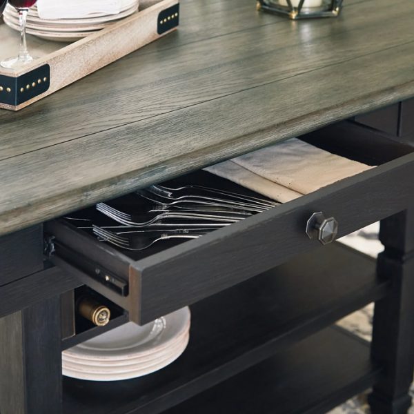 La belleza y practicidad de esta mesa Isla Vermont Old Black es algo para el deleite. Un acabado textural en dos tonos le da a esta mesa de comedor con tablero de efecto superior una doble porción de encanto. Cuatro cajones de deslizamiento suave le permiten tener manteles, servilletas y utensilios a mano. Y si te encanta entretener, seguro que brindarás por el vino incorporado de esta mesa.