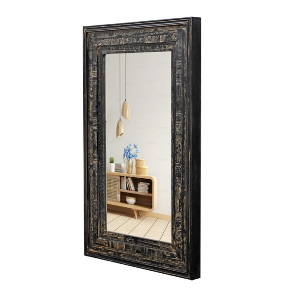 Espejo de Pared Rectangular Timber con Marco Estilo Vintage. Dale un toque sofisticado y elegante a tus espacios con este espejo de pared rectangular. Su marco robusto, acabado en tonos oscuros con efecto envejecido, aporta carácter y personalidad, ideal para ambientes modernos, rústicos o industriales. Perfecto para colocar en salas, recibidores, dormitorios o pasillos, este espejo no solo amplía la sensación de espacio y luminosidad, sino que también se convierte en un elemento decorativo único. Diseño: Rectangular con marco decorativo estilo vintage. Marco de madera con acabado envejecido. Color negro con detalles desgastados. Puede instalarse en posición vertical u horizontal. Ideal para decoración y para dar amplitud visual a cualquier ambiente. Transforma tu hogar con un espejo que combina funcionalidad y diseño atemporal.