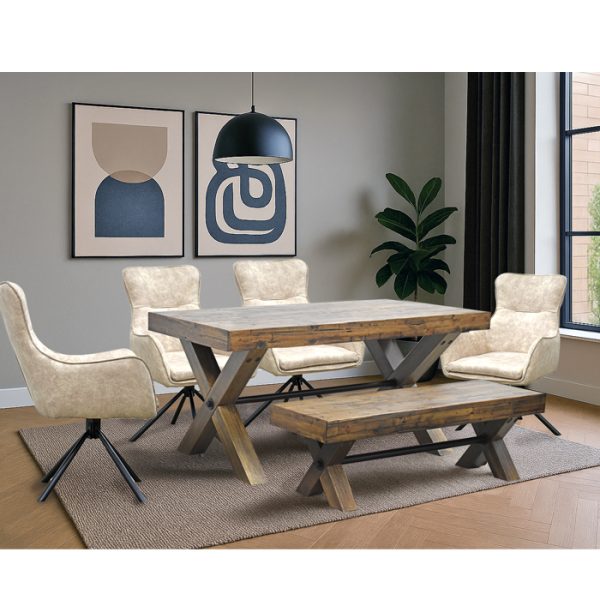 La Mesa Comedor y la Banca Timber Small elevan el arte del estilo rústico y moderno. Es una solución elegante y práctica para cenas familiares y reuniones. El perfil de casa de campo de líneas limpias está embellecido con un especial acabado y una parte superior con efecto de tablones para agregar encanto. Añadirá una asombrosa estética moderna a cualquier área del hogar. Su estilo versátil la hace perfecta para la cocina, el salón, el dormitorio, la casa de campo, o la terraza. Se convertirá en un complemento práctico y estético para su espacio.