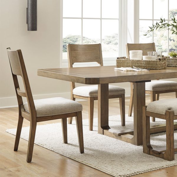 Este banco de comedor se asienta cómodamente en la intersección de la estética moderna de la casa de campo y la casa de campo. Su disposición cálida y acogedora se refleja en sus encantadores elementos arquitectónicos y tela de textura neutra. Incluso con su aplomo, el banco sigue siendo práctico. Su asiento acolchado lo invita a quedarse más tiempo en la mesa, definiendo su comedor con una función y un estilo confiables.