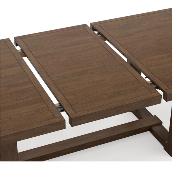 Esta mesa extensible de comedor se asienta cómodamente en la intersección de la estética moderna de una casa de campo. Su carácter cálido y acogedor se refleja en sus encantadores elementos arquitectónicos y su acabado esmaltado en marrón claro. Incluso con su equilibrio, sigue siendo práctico. Una característica de extensión suave ofrece mucho espacio para la familia y los invitados, definiendo su comedor con una función y un estilo confiables.