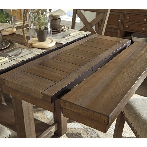 La mesa extensible de comedor eleva el arte del estilo rústico informal. El perfil de casa de campo de líneas limpias está embellecido con un acabado de nuez moscada envejecida y una parte superior con efecto de tablones gruesos para agregar encanto. Y con dos hojas opcionales aseguran que haya suficiente espacio para fiestas de hasta ocho personas.