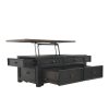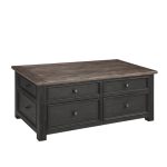 Esta mesa de centro elevable con acabado negro texturizado es todo lo que se habla en el mundo del diseño actual. El grano de madera se ve a través de la parte superior gris-marrón desgastada en todo su placer terroso. Los cajones enmarcados están adornados con adorables herrajes tradicionales. Los cajones de deslizamiento suave facilitan el almacenamiento de sus pertenencias con estilo. Lift top transforma su espacio en una estación de trabajo sin problemas.
