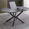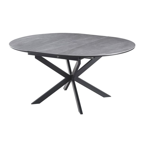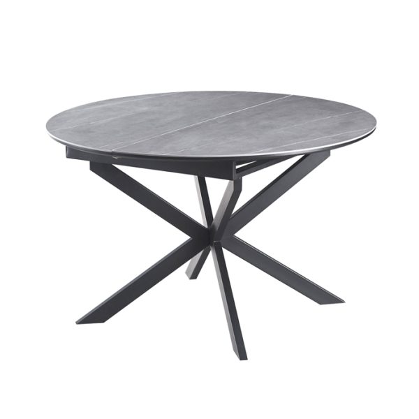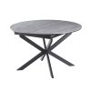 Mesa comedor circular extensible Lifecas destaca por su diseño elegante y minimalista en tonos oscuros. Perfecta para ambientes modernos, cuenta con un sistema extensible mediante guías metálicas y una ampliación interior tipo libro, ambas en color negro. Su tapa superior cerámica en color negro proporciona durabilidad y un estilo contemporáneo, mientras que su estructura metálica en el mismo tono añade estabilidad y un acabado sofisticado. La mesa combina funcionalidad y diseño refinado, ideal para crear un punto focal en tu comedor o cocina.
