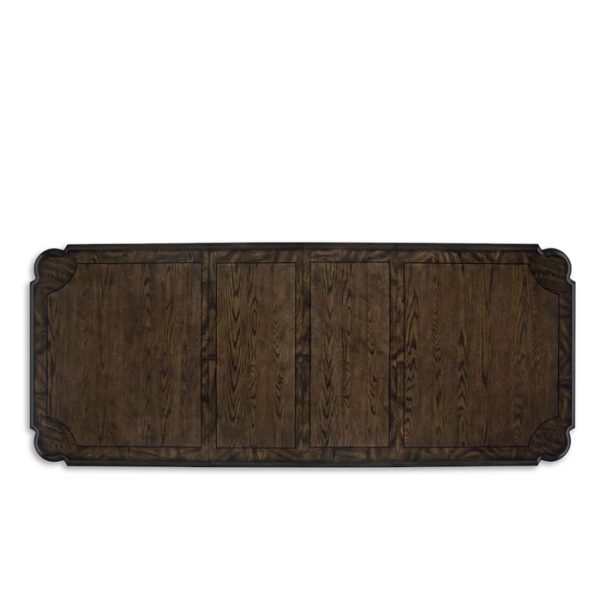 Estilo tradicional opulento. Inspirada en la grandeza y la gracia del estilo tradicional del Viejo Mundo, esta colección de comedor es nada menos que impresionante. Una combinación selecta de materiales se ve acentuada por apliques ornamentales detallados, pilastras decorativas de gran escala y patas cabriolé ornamentadas. Fabricado con madera maciza, chapas de roble y fresno con sustratos de MDF y componentes de resina fundida. Acabado en coloración marrón oscuro. Cuenta con un tablero bien formado con bordes en forma de remolino de fresno que se asienta sobre una base de pedestal doble con un diseño ornamentado fundido y un bastidor de metal decorativo