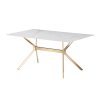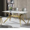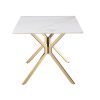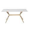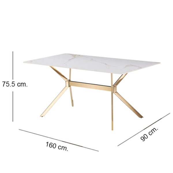 La mesa rectangular Lifecas Gold. Cubierta de acabado marmoleado de alto brillo de 10 mm. Destaca por su diseño moderno y su robusta base geométrica. Presenta un diseño que mejora a la perfección cualquier área de comedor con encanto contemporáneo. Sus líneas limpias y estilo minimalista sirven como una unidad central elegante. Se apoya en una base robusta de acero dorado, lo que garantiza una durabilidad y estabilidad excepcionales para un uso a largo plazo, está diseñada para soportar el desgaste diario, proporcionando una plataforma robusta para sus necesidades gastronómicas. Está diseñada para un mantenimiento fácil, que requiere solo una simple limpieza con un paño seco o húmedo. Esta rutina de cuidado sin complicaciones mantiene su mesa con un aspecto prístino y garantiza una durabilidad a largo plazo.
