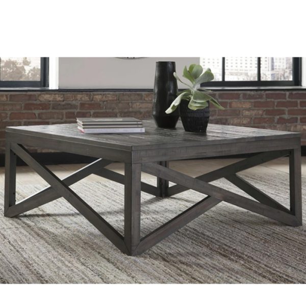 Con una tapa estilo bloque de carnicero, la mesa de centro Haroflyn es una combinación genial de estilo contemporáneo y sencillez rústica. Su complejo acabado gris es rico en variaciones tonales para un elemento de madera flotante.
