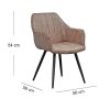 Con un diseño envolvente y elegante, esta silla es la opción ideal para quienes buscan confort y estilo en un solo mueble. Su forma ergonómica y su estética de inspiración vintage la convierten en una pieza versátil, perfecta para comedores, escritorios etc. Tela PU con inyección de poliuretano en tono cognac, con acabado suave al tacto y aspecto desgastado que aporta un aire retro-industrial. Costuras verticales decorativas en el respaldo que estilizan su silueta y le otorgan un look sofisticado. Estructura de asiento curvo y envolvente, que brinda soporte y comodidad tanto en la espalda como en los brazos. Patas metálicas cónicas en negro mate, que aportan estabilidad y un contraste contemporáneo.
