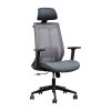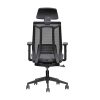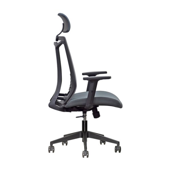 Los apoyabrazos con cubierta blanda de PU regulables en altura ( 6 Posiciones), ofrecen un soporte adicional y una mayor versatilidad, permitiendo ajustes de altura y ángulo para adaptarse a las preferencias de cada usuario. El apoyacabeza, tapizado en malla y ajustable en altura e inclinación, proporciona un soporte suave y confortable para el cuello.