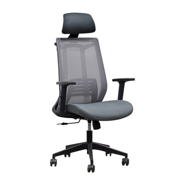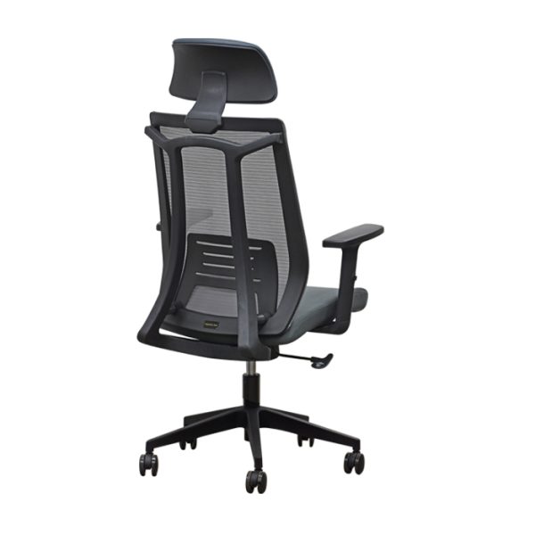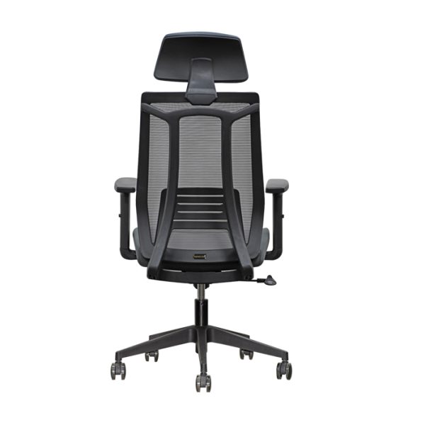 El respaldo ergonómico amortiguado, con marco de polipropileno. Tapizado en malla, con apoyo lumbar fijo, cabecero regulable en altura ( 5 posiciones). Tapizado en PU y un soporte ergonómico para la espalda durante largas jornadas laborales.