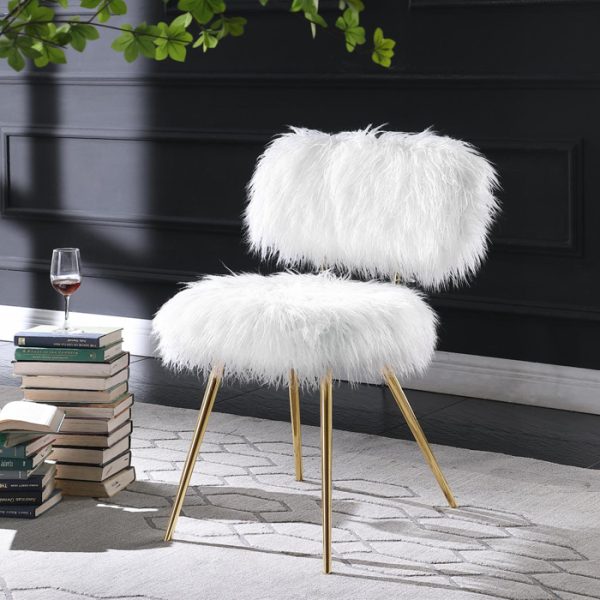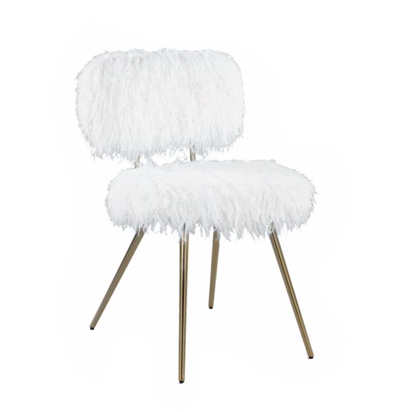 Dale un toque de glamour a tu hogar con la silla decorativa Chasqui Drag White de piel sintética. Esta silla cuenta con patas de metal acampanadas de acero inoxidable, acabado en oro, un diseño sin brazos y un asiento acolchado grueso. Tendrás que sentarte para sentir las fibras super suaves de la piel sintética blanca. El cojín acolchado añade suavidad a un diseño acogedor y seguro a partes iguales. Las llamativas fibras de piel sintética hacen de este conjunto un complemento fantástico para cualquier habitación.