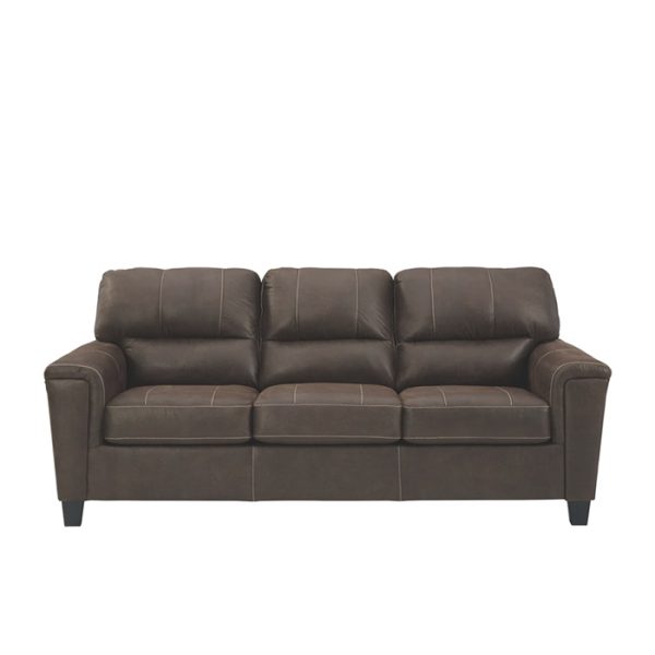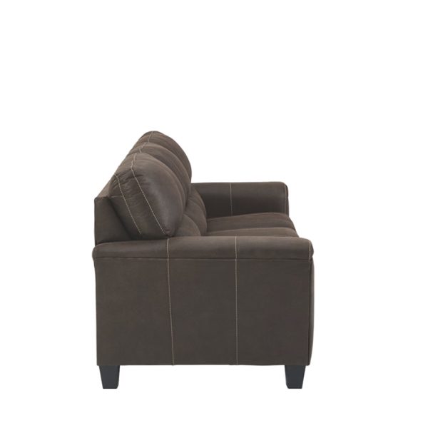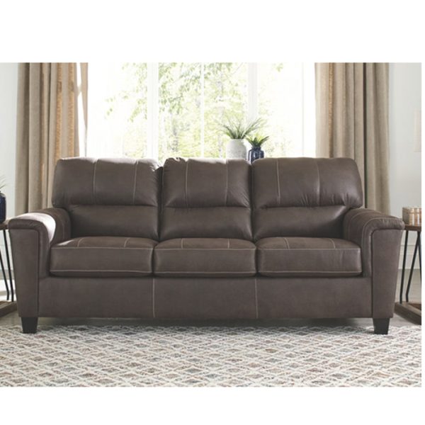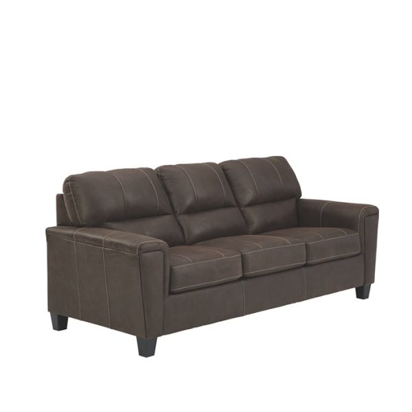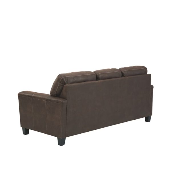 Si te encanta el aspecto fresco del cuero pero anhelas la sensación cálida de la tela, puedes sentirte cómodo en este sofá. Envuelto en una fabulosa piel sintética con un tono desgastado y un toque de textura de guijarros para parecerse al real, este sofá de dos plazas decididamente moderno demuestra que menos es más. Los elementos incluyen perfiles laterales en ángulo y reposabrazos con rieles envueltos con una capa de suavidad como almohada para darle ese toque extra. Las prominentes costuras gigantes y el estilo de espalda dividida con líneas limpias aportan un estilo vanguardista.