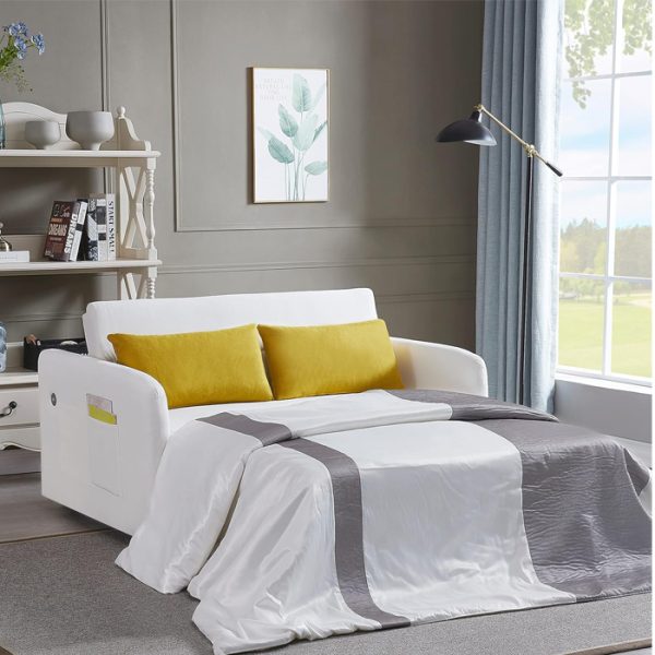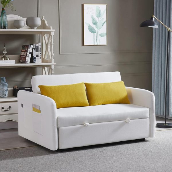 Sofá cama extraíble con bolsillo y enchufe USB para espacios pequeños, sala de estar, apartamento y dormitorio, color beige. Sofá cama beige extraíble. Es un sofá cama multifuncional, simplemente coloca el respaldo del sofá hacia abajo y saca la parte delantera, y se puede convertir en una cama. El diseño convertible y plegable del sofá cama lo hace ideal para espacios pequeños como apartamentos, dormitorios, habitaciones de invitados, oficinas, salas de juegos, salas de estar, etc. El enchufe USB se añade en el brazo izquierdo (frente al sofá) para que sea muy conveniente cargar tu teléfono celular mientras estás sentado en el sofá para descansar.