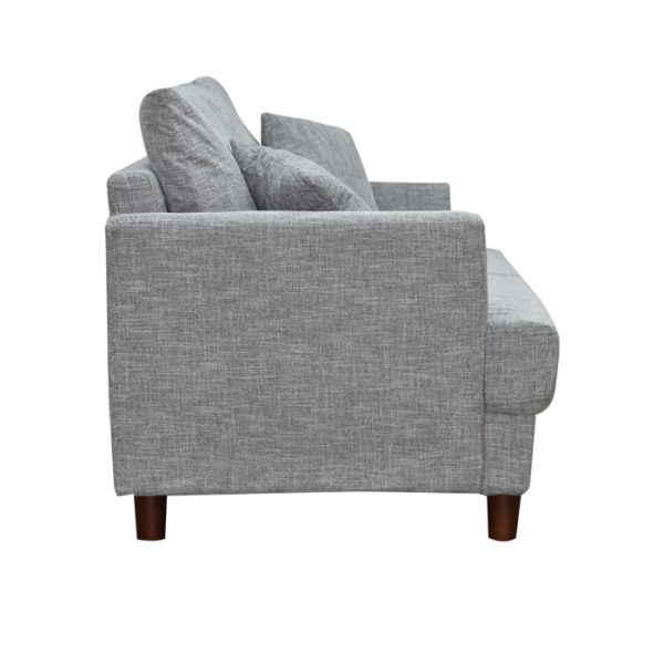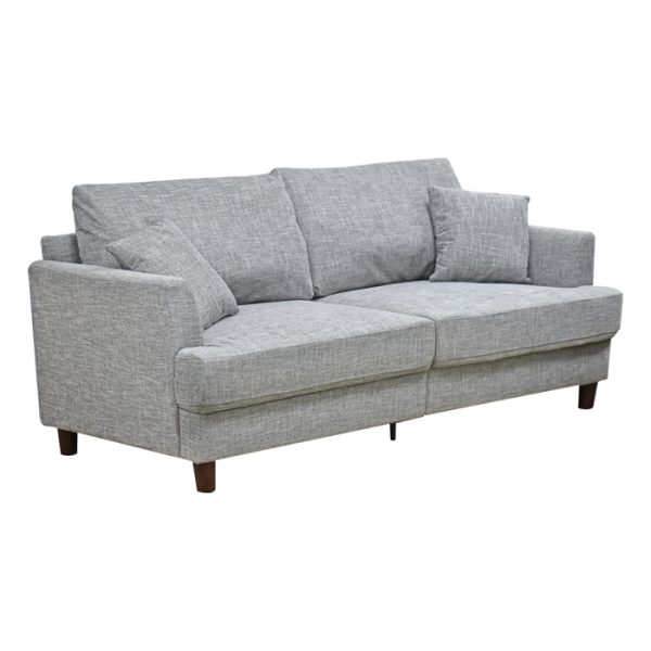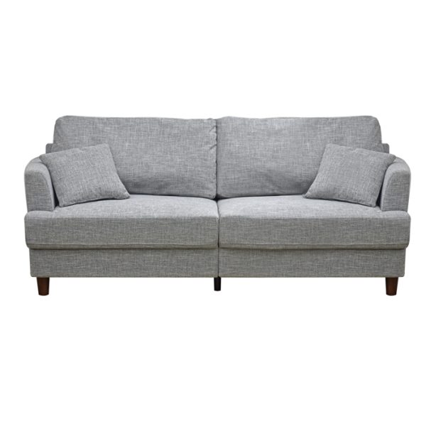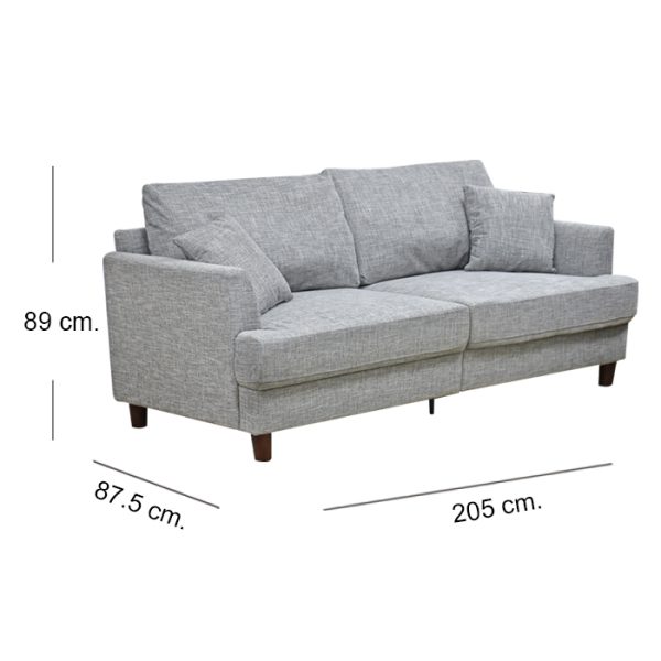 Descubre la combinación perfecta de estilo y confort con este elegante sofá de dos plazas. Tapizado en una suave y resistente tela gris, este sofá aporta un toque contemporáneo a cualquier sala de estar. Su diseño moderno se complementa con cojines mullidos que ofrecen un excelente soporte lumbar, mientras que los cojines laterales añaden comodidad adicional. Los cojines son envasados al vacío por lo que requieren 48 horas para tomar su forma. Las patas no solo brindan estabilidad, sino que también crean un atractivo contraste visual que realza su estética. Ideal para momentos de relajación o para recibir visitas, este sofá se adapta fácilmente a ambientes modernos, minimalistas o cálidos.
