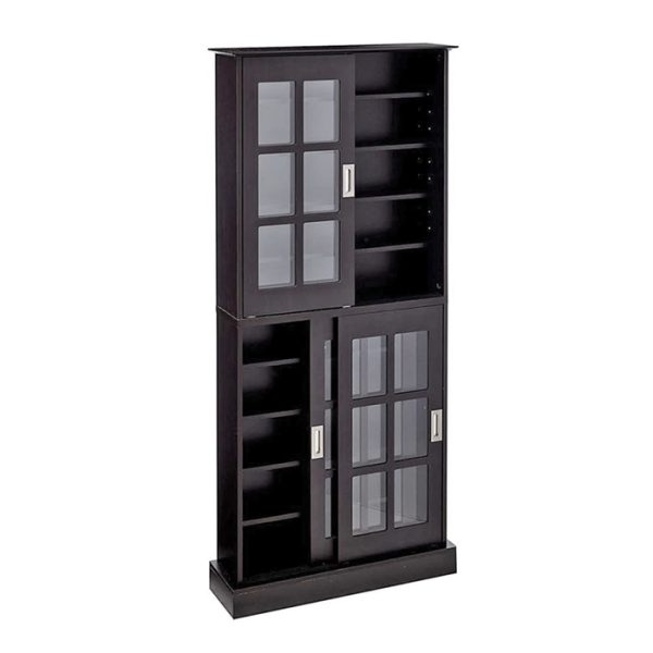 Guarda tus archivos multimedia, objetos decorativos, libros pequeños, objetos de colección y ocasiones conmemorativas. Diseñado con puertas de vidrio templado enmarcadas, es una elegante pieza para salas de estar, oficinas y otras áreas de tu hogar. La vitrina librero Drag de almacenamiento tiene puertas equipadas con vidrio templado que es más fuerte y seguro que las pantallas de vidrio tradicionales, lo que le brinda tranquilidad al saber que puede abrir y cerrar las puertas corredizas de manera segura durante los años venideros. Los estantes ajustables del mueble de almacenamiento multimedia permiten organizar diversos tipos de medios: Blu-ray, DVD, CD y videojuegos. Configure 8 estantes ajustables para maximizar la funcionalidad del mueble y organizar sus colecciones con un aspecto impecable.
